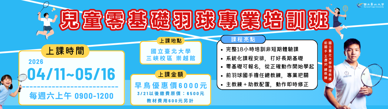 本課程以兒童身心發展為核心,規劃系統化、分級的羽球教學內容,從基本動作、步伐協調到擊球應用循序引導。課程重視正確姿勢建立與運動安全,並透過小組練習與即時回饋,培養孩子的專注力、協調性與運動自信,讓學員在穩定且正向的學習環境中,扎實建立羽球基礎能力。