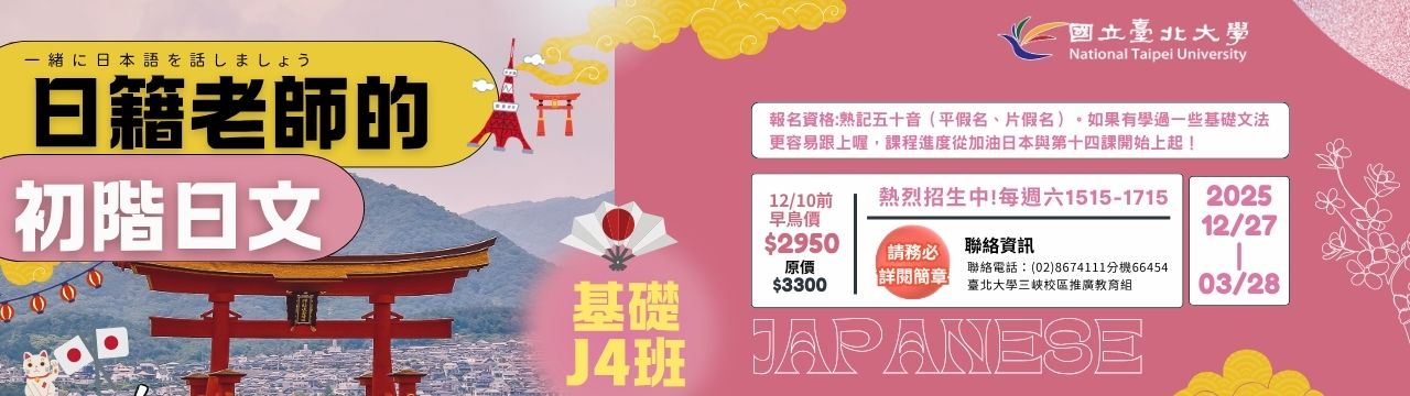 【三峽】日籍老師的初階日文 -第4期(週六班)