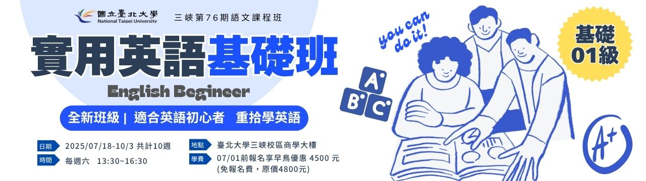 【三峽】實用英語基礎班(基礎01級)-週六下午