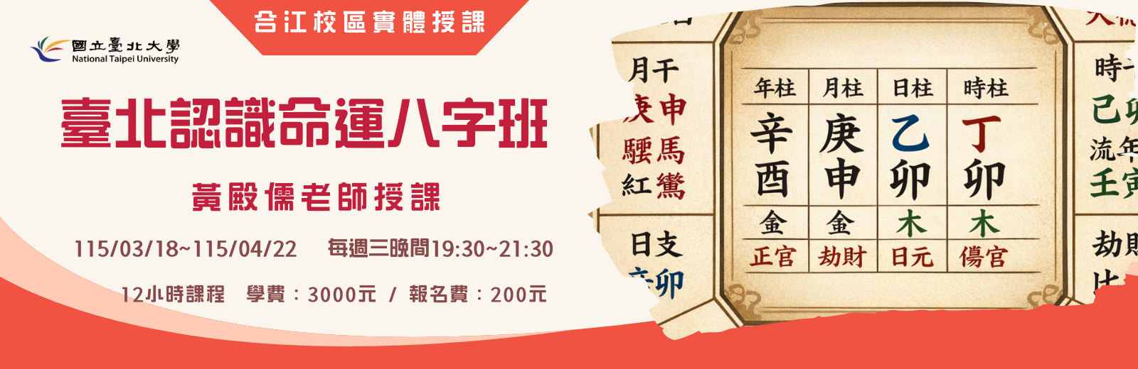 【臺北】認識命運八字班(入門課程)第1期(確定開班)