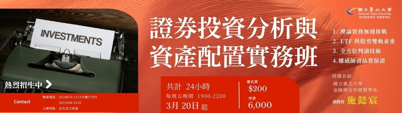 本課程將協助您建立專屬的「投資地圖」,在變動的市場中達成穩健獲利的目標!
