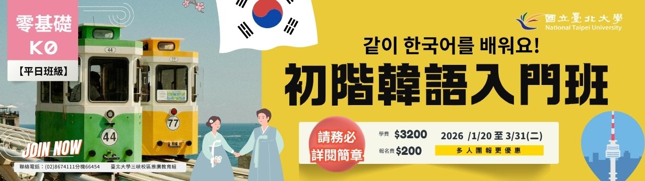 【三峽】初階韓語入門班(零基礎平日班)_K1