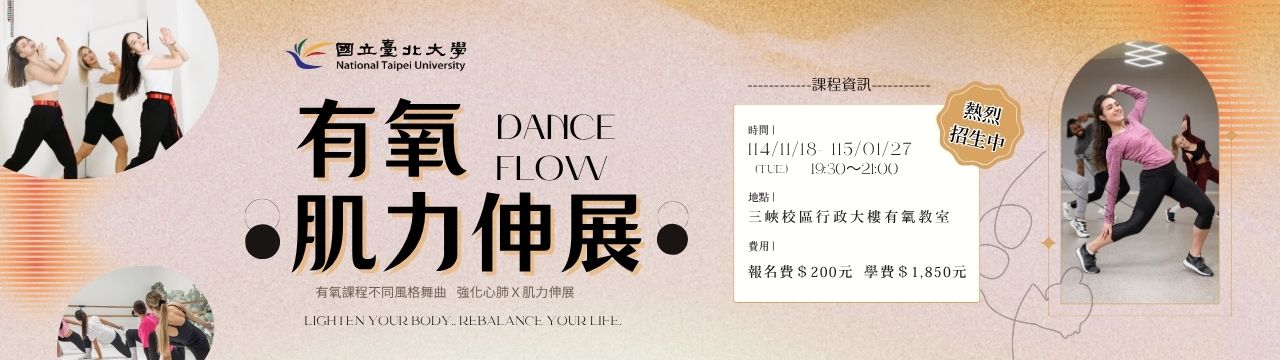 - 上課地點:國立臺北大學行政大樓b1 韻律教室。